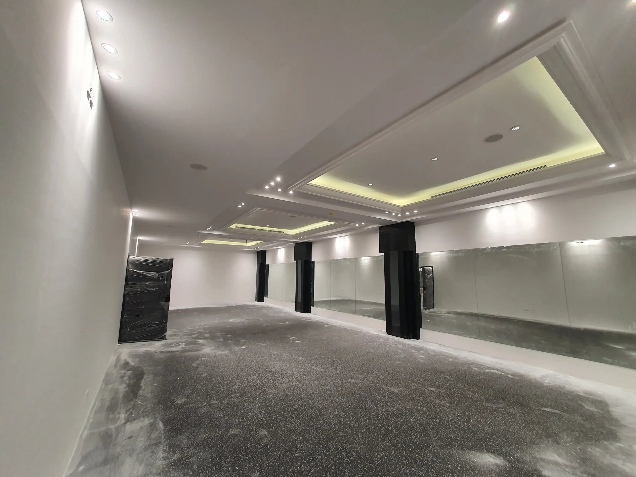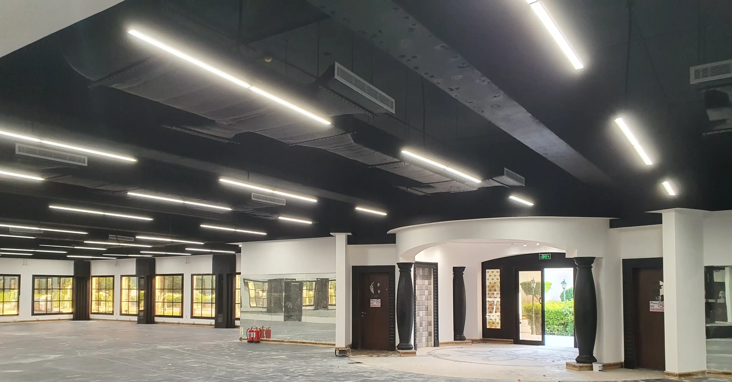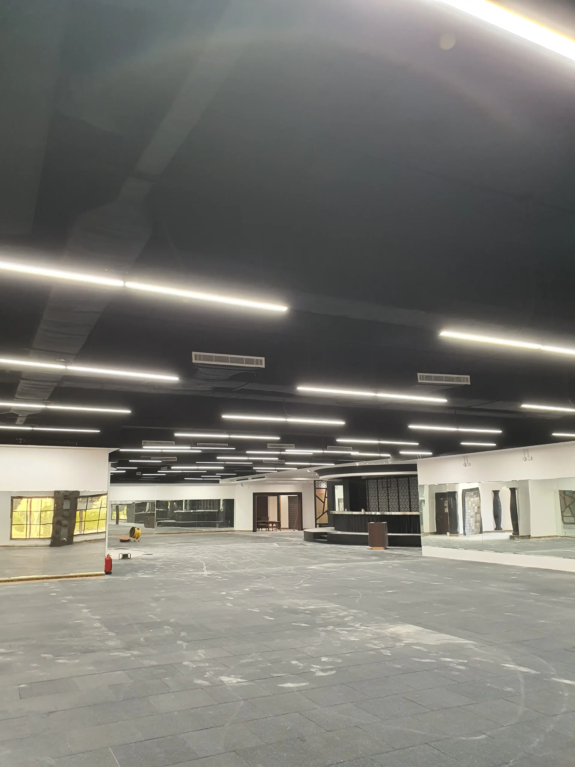 نطاق العمل: جميع أعمال التشطيبات (الدهانات، الأرضيات المطاطية، الجدران العازلة للصوت، الجبس، …)، أعمال الميكانيكا والكهرباء والسباكة (MEP)، وأعمال أنظمة مكافحة الحريق.